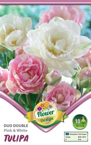 Tulipa Duo Double Pink & White rózsaszín és fehér tulipán virághagymák Virághagyma körmérete: 10/11 cm Javasolt ültetési ideje: IX. -XII. Virágzás ideje: III. -IV. Javasolt ültetési távolság kb. : 10 cm Javasolt ültetési mélység kb. : 10 cm Növény várható magassága kb. : 40 cm A Triumph tulipánok 40-50 cm szárhosszúságú, többségében nagy virágú és erõs sz