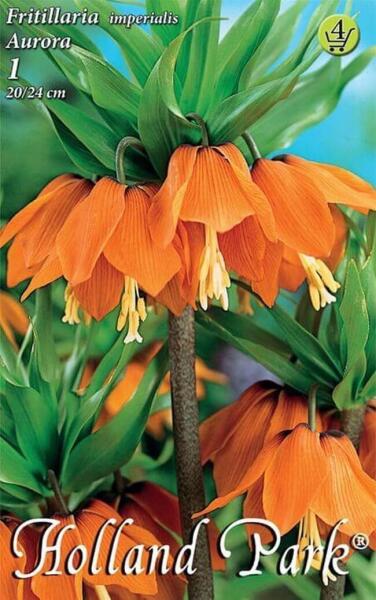 Fritillaria imperialis Aurora császárkorona virághagyma Virághagyma körmérete: 20/24 cm Javasolt ültetési ideje: Augusztus - December Virágzás ideje: Április - Május Javasolt ültetési távolság: 20 cm Javasolt ültetési mélység kb. : 15 cm Növény várható magassága kb. : 90 cm A császárkorona a tavaszi kert különleges dísze. 80 cm-es magasságával elegáns szoliter növ