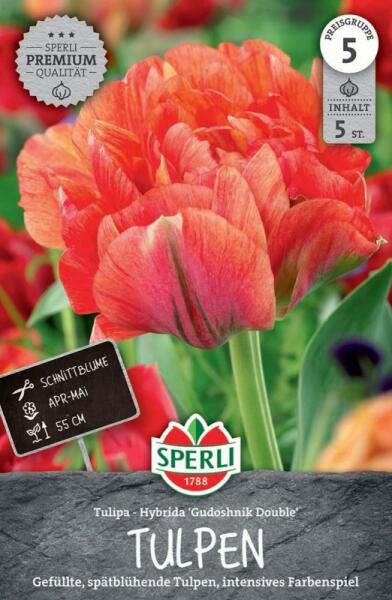 Premium Gefüllte Späte Tulpe Gudoshnik Double kései teltvirágú tulipán virághagyma Virághagyma körmérete: 11/12 cm Növény várható magassága: 30-60 cm Javasolt ültetési ideje: szeptember-december Virágzás ideje: március-május Vágott virágnak is alkalmas A kései teltvirágú tulipánok a tavasz végén nyílnak, bámulatos, nagy és tömött virágfejükkel. Széles színská