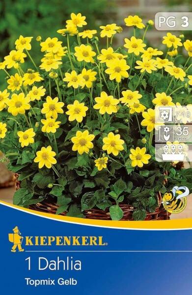 Dahlia Topmix Gelb dália gumó Virághagyma körmérete: I Javasolt ültetési ideje: tavasz Növény várható magassága: 35 cm Virágzás ideje: 7-10 hó Balkonládába is ültethetõ