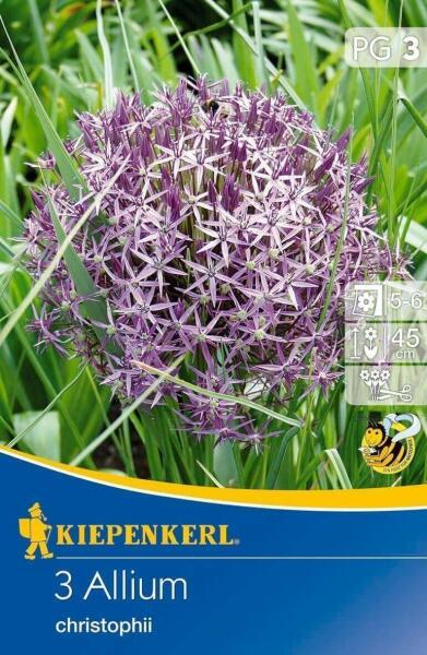 Allium christophii díszhagyma virághagymák Virághagyma körmérete: 12/+ cm Növény várható magassága: 45 cm Javasolt ültetési ideje: szeptember-december Virágzás ideje: június-július Vágott virágnak is alkalmas Az Allium christophii - díszhagyma (léggömbhagyma) 20 cm átmérõjű, lilás-ezüstös gömb virágfejek ülnek az egyenes szárak tetején. Késõ tavasszal, kora nyá