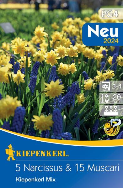 Nárcisz-gyöngyike virághagyma összeállítás A Nárcis és Gyöngyike színkeverék látványos évelõk, amelyek eleganciát és frissességet varázsolnak tavaszi kertjébe. Ez a multicolor mix nárciszok és muscari fajtákat tartalmaz, mindegyik a sárga és a mélykék élénk árnyalataival. Ezek a virágok együtt lenyűgözõ látványt nyújtanak, és a kert bármelyik sarkát a szí