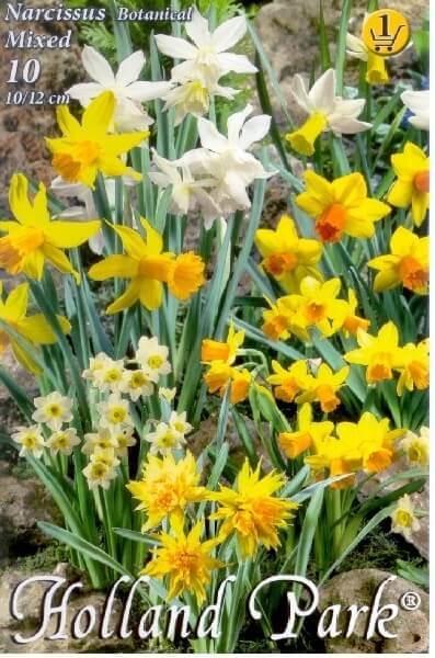 Narcissus Botanical Mixed vegyes nárcisz virághagymák Virághagyma körmérete: 10/12 cm Javasolt ültetési ideje: IX-XII. Virágzás ideje: III-IV. Javasolt ültetési távolság kb. : 10 cm Javasolt ültetési mélység kb. : 10 cm Növény várható magassága kb. : 20 cm A nárciszok szinte minden talajon jól fejlõdnek. Szeptembertõl decemberig ültethetõk. Legszebbek nagyobb önálló