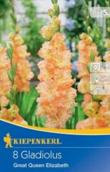 Gladiolus Great Queen Elizabeth kardvirág virághagymák Gumó körmérete: 12/14 cm Javasolt ültetési ideje: tavasz Növény várható magassága: 110 cm Virágzás ideje: 7-9 hó Vágott virágnak is alkalmas Szára nem ágazik el, hosszan barázdált levelet növeszt. Erõs száron lévõ virágai tölcsérformát alkotnak, fürtben sorakoznak és alulról felfelé nyílnak. A kardvirág tav