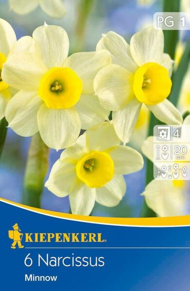 Narcissus tazetta Minnow botanikai nárcisz virághagymák Virághagyma körmérete: 12/14 cm Növény várható magassága: 20 cm Javasolt ültetési ideje: szeptember-december Virágzás ideje: április Balkonládába is ültethetõ A botanikai nárciszok különösen vonzóak a kertészek számára kisebb méretük és korai virágzásuk miatt. Ezek a nárciszok gyakran az elsõk között bontj