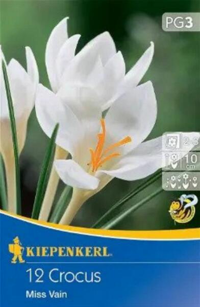 Crocus chrysanthus Miss Vain botanikai krókusz virághagymák Virághagyma körmérete: 5/+ cm Növény várható magassága: 8 cm Javasolt ültetési ideje: szeptember-december Virágzás ideje: február-március Balkonládába is ültethetõ A botanikai krókuszok apró, de annál látványosabb virágok, amelyek az elsõként nyílnak tavasszal, gyakran még a hó alatt is megjelennek. Ezek a