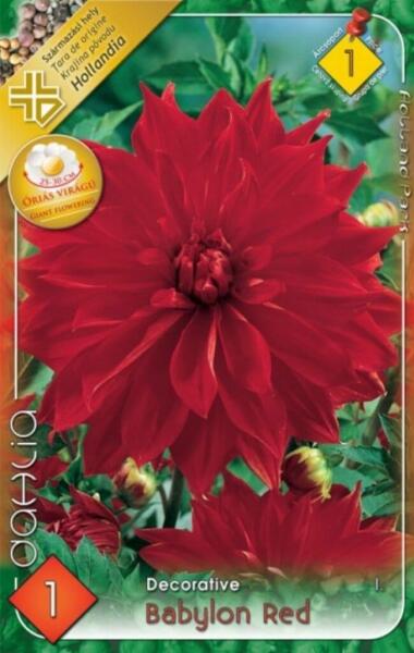 Dahlia Decorative Babylon Red dekoratív dália gumó 1' Javasolt ültetési ideje: III. -V. Virágzás ideje: VII. -X. Javasolt ültetési távolság: 60 cm Javasolt ültetési mélység kb. : 8 cm Növény várható magassága kb. : 110 cm Termesztett állományból származó növény. Származási hely: EU Kiültetés elõtt a gumókat - megjelölve, hogy melyik-melyik - virágzás segítõké