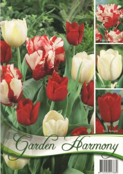 Tulipa Garden Harmony tulipán virághagymák (piros-fehér) Javasolt ültetési ideje: Szeptember - December Virágzás ideje: Április - Május 6 db Tulips Estella Rijnveld tulipán virághagymák 6 db Tulips Silver Dollar tulipán virághagymák 6 db Tulips Bastgone tulipán virághagymák A színek és formák szép harmóniáját varázsolja a kertbe ez a kedves virághagyma összeállítás.
