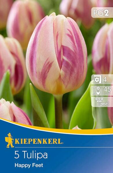 Tulipa Happy Feet Triumph tulipán virághagymák Virághagyma körmérete: 12/+ cm Növény várható magassága: 45 cm Javasolt ültetési ideje: szeptember-december Virágzás ideje: április Vágott virágnak is alkalmas A Triumph tulipánok a tavaszi kertek ékkövei, élénk színeikkel és elegáns megjelenésükkel lenyűgöznek mindenkit. Különbözõ árnyalatokban, mint a piros, sárga