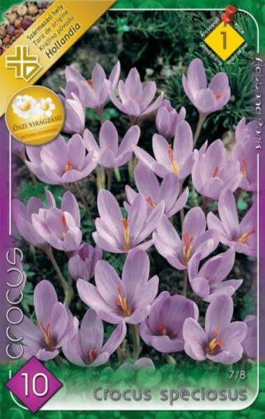 Crocus Species Speciosus krókusz virághagymák Virághagyma körmérete: 7/8 cm Javasolt ültetési ideje: Augusztus-Szeptember Virágzás ideje: Október Javasolt ültetési távolság: 8 cm Javasolt ültetési mélység kb. : 8 cm Növény várható magassága kb. : 10 cm Termesztett állományból származó növény. Származási hely: EU Általánosságban a krókuszok (Crocus) a tavasz hí
