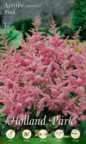 Astilbe pink gyöngyvesszõ gumó Javasolt ültetési ideje: III. -V. Virágzás ideje: VI. -VIII. Javasolt ültetési távolság: 30 cm Javasolt ültetési mélység kb. : 10 cm Növény várható magassága kb. : 70 cm Termesztett állományból származó növény. Származási hely: EU A gyöngyvesszõ télálló évelõ növény. 70 cm-es virágfüzére júniustól augusztusig nyílnak. Telje