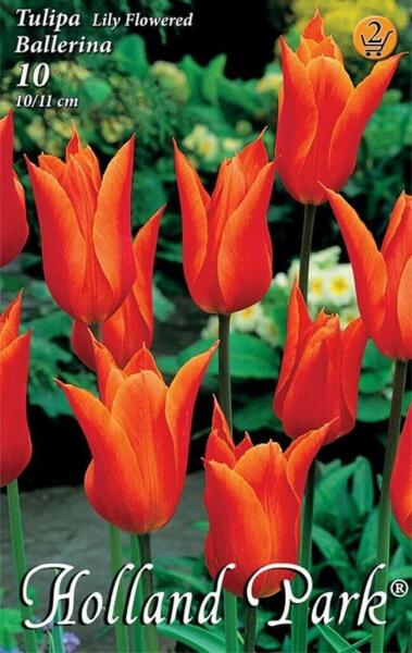 Tulipa Lily flowered Ballerina liliomvirágú tulipán virághagymák Virághagyma körmérete: 10/11 cm Javasolt ültetési ideje: IX. -XII. Virágzás ideje: IV. -V. Javasolt ültetési távolság kb. : 10 cm Javasolt ültetési mélység kb. : 10 cm Növény várható magassága kb. : 55 cm A liliomvirágú tulipánok április-májusban virágzó, rendkívül kecses virágformájú tulipánok.