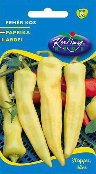 Rédei kertimag Szentesi fehér kos étkezési paprika vetõmag K'Folytonos növekedésű, édes ízű. Hajtatható, de szabadföldön is termeszthetõ. Vetési idõ: március Palántázás ideje: május Életcikus: egynyári Termés vagy virág színe: sárga Növény magassága: 70 cm Tenyészidõ: korai Szedés vagy virágzás ideje: július, augusztus, szeptember Sortávolság: 70 cm Tõtávol
