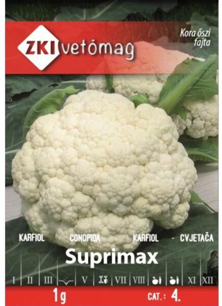 KARFIOLKéső nyári, kora őszi típus. Erőteljes növekedésű, kiváló levéltakarás jellemzi. A melegre nem érzékeny. Tenyészideje 80-100 nap. Friss fogyasztásra, fagyasztásra alkalmas. (A tasak kb. 200-250 szem vetőmagot tartalmaz. )