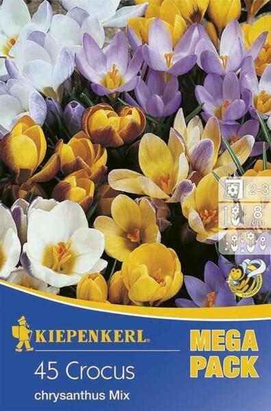 Crocus Botanischer Krokus Mix vegyes botanikai krókusz virághagymák MEGA PACK Virághagyma körmérete: 5/7 cm Növény várható magassága: 8 cm Javasolt ültetési ideje: szeptember-december Virágzás ideje: február-március Balkonládába is ültethetõ Ez a különleges virághagyma csomag változatos színű krókuszokat tartalmaz, melyek 10-15 cm magasra nõnek. A virágok gazdag palet