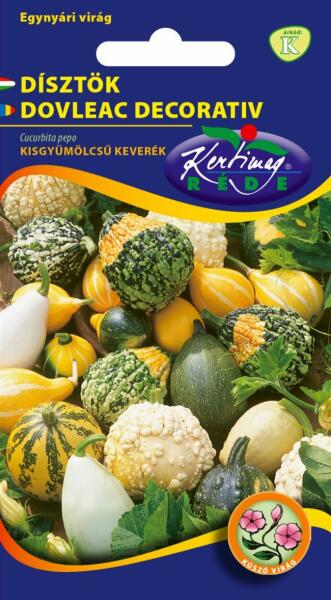 Rédei kertimag Dísztök kisgyümölcsű keverék vetõmag K'Kerítések, korlátok befuttatására alkalmas kúszónövény. Díszértéke a különbözõ érdekes formájú és méretű termés, mely kiváló õszi dekoráció. Vetési idõ: május Életcikus: , egynyári, Termés vagy virág színe: keverék Növény magassága: 200 cm Szedés vagy virágzás ideje: augusztus, szeptember, okt