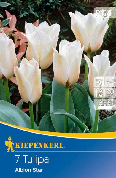 Tulipa Albion Star Greigii tulipán virághagymák Virághagyma körmérete: 11/12 cm Növény várható magassága: 20 cm Javasolt ültetési ideje: szeptember-december Virágzás ideje: április-május Balkonládába is ültethetõ A Greigii tulipán egy szemet gyönyörködtetõ tavaszi virág, amely különleges mintázatú leveleivel és élénk színű virágaival tűnik ki. Jellemzõje a ga