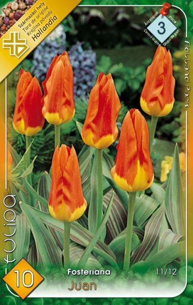 Tulipa Fosteriana Juan tulipán virághagymák Virághagyma körmérete: 11/12 cm Javasolt ültetési ideje: Szeptember - December Virágzás ideje: Április Javasolt ültetési távolság: 10 cm Javasolt ültetési mélység kb. : 10 cm Növény várható magassága kb. : 45 cm Botanikai tulipánok, mintegy 30 cm-es virágszárral, hosszan tartó különleges színű virágokkal. Kertbe, évelõ