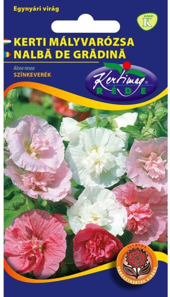 Alcea rosea annua Mályvarózsa Alacsony fajtacsoport:60-80 cm magas bokrosodó növény. Tőlevelei nagyok, szárlevelei kisebbek, karéjozottak, szára és levelei szőrösek. Virágai dús álfüzérekben nyílnak, 7-10 cm nagyok és általában teltek. Gazdag színárnyalatokban nyílnak. Vetés: házi körülmények között cserepekbe vagy ládákba vetjük. Sötétben csírázó mag, kelés