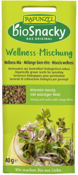 Wellness csíramag 100% ellenőrzött ökológiai gazdálkodásból. Bio termék Kiszerelés: 40 g Allergének: nyomokban gluténtartalmú gabonát és mustármagot tartalmazhat. Fontos! Felhasználás előtt tiszta vízzel alaposan mossuk át. Hűvös, száraz, fénytől védett helyen tárolandó. Ajánlott csíráztatási mennyiség: 2 evőkanál / Áztatási idő: 12 óra / Hőmérséklet: 18-