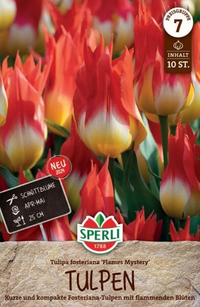 Premium Fosteriana-Tulpe Flames Mystery tulipán virághagyma Virághagyma körmérete: 11/12 cm Növény várható magassága: 30-60 cmJavasolt ültetési ideje: szeptember-decemberVirágzás ideje: március-májusVágott virágnak is alkalmasA Fosteriana tulipán egy impozáns tavaszi virág, amely lenyűgözõ, nagy virágfejeivel és élénk színeivel vonzza a figyelmet. Általában március