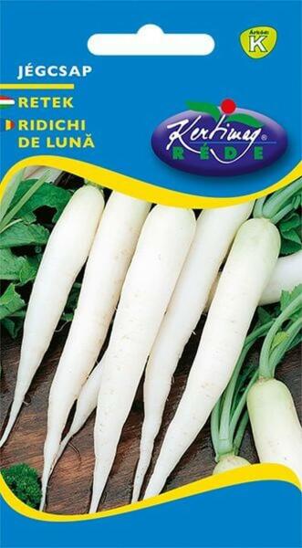 Rédei kertimag jégcsap retek vetõmag K'Korai, enyhén csípõs ízű, jégcsap alakú. Nem pudvásodik. Vetési idõ: március Életcikus: , egynyári, Termés vagy virág színe: fehér Növény magassága: 25 cm Tenyészidõ: korai Szedés vagy virágzás ideje: május Sortávolság: 25 cm Tõtávolság: 5 cm Vetésmélység: 2 cm Vetõmagigény: 15 g/10nm 1 g magban lévõ szem mennyiség: 1
