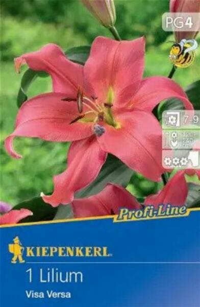 Lilium Visa Versa liliom virághagymák Virághagyma körmérete: 20/+ cm Növény várható magassága: 120-240 cm Javasolt ültetési ideje: szeptember-december Virágzás ideje: július-szeptember Vágott virágnak is alkalmas Illatos A 'Visa Versa' liliom egy lenyűgözõ dísznövény, amelyet nagy, kontrasztos virágai miatt becsülnek. Ezek a virágok kifinomultságot és eleganciát kölcs