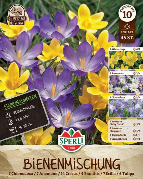 Frühlingsgarten Bienenparadies tavaszi méhbarát virághagyma keverék Növény várható magassága: 15-30 cm Javasolt ültetési ideje: szeptember-december Virágzás ideje: február-április Tartalma: 7 db hófény virághagyma 7 db szellõrózsa virághagyma 14 db krókusz virághagyma 4 db téltemetõ virághagyma 7 db csillagvirág virághagyma 6 db tulipán virághagyma Az õszi virághag