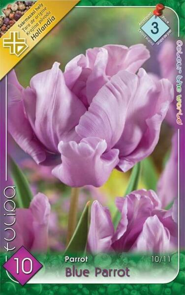 Tulipa Parrot Blue Parrot papagáj tulipán virághagymák Virághagyma körmérete: 10/11 cm Javasolt ültetési ideje: Szeptember - December Virágzás ideje: Április - Május Javasolt ültetési távolság: kb. : 10 cm Javasolt ültetési mélység kb. : 10 cm Növény várható magassága kb. : 50 cm A papagáj tulipánok kifejezetten késõi, májusi virágzású, 50 cm szárhosszúságú, s