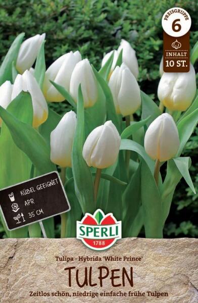 Einfache Frühe Tulpe White Prince korai egyszerű virágú tulipán virághagyma Virághagyma körmérete: 11/12 cm Növény várható magassága: 30-60 cm Javasolt ültetési ideje: szeptember-december Virágzás ideje: március-május Vágott virágnak is alkalmas A korai egyszerű virágú tulipán egy bájos és praktikus választás a tavaszi kertbe. Ezek a tulipánok a tavasz elsõ hónapja