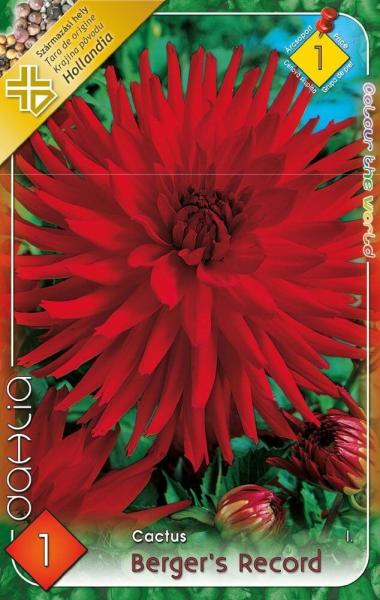 Berger's Record kaktusz dália Javasolt ültetési ideje: III. -V. Virágzás ideje: VII. -X. Javasolt ültetési távolság: 60 cm Javasolt ültetési mélység kb. : 8 cm Növény várható magassága kb. : 110 cm Termesztett állományból származó növény. Származási hely: EU Kiültetés elõtt a gumókat - megjelölve, hogy melyik-melyik - virágzás segítõként és hajtásdugványozá