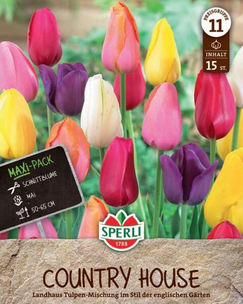 Maxi Tulpen Landhaus kései egyszerű virágú tulipán virághagyma mix Virághagyma körmérete: 11/12 cm Növény várható magassága: 30-60 cm Javasolt ültetési ideje: szeptember-december Virágzás ideje: március-május Vágott virágnak is alkalmas A kései egyszerű virágú tulipán egy kifinomult és elegáns választás, amely a tavaszi kert különleges ékköve lehet. Virágai leti