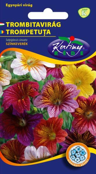Rédei kertimag Trombitavirág színkeverék vetõmag A'Érdekes, bársonyos, egzotikus hangulatú, trombita alakú virágai elütõ színű erezettel a hajtásvégeken csoportosan nyílnak. Napfényes helyet, jó kerti talajt igényel. Vetési idõ: április Életcikus: , egynyári, Termés vagy virág színe: színkeverék Növény magassága: 60 cm Szedés vagy virágzás ideje: július, augusz