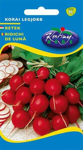 Rédei kertimag korai legjobb retek vetõmag K'Hajtatható, középnagy gumójú. Héja skarlátpiros, húsa fehér. Vetési idõ: március Életcikus: , egynyári, Termés vagy virág színe: piros Növény magassága: 25 cm Tenyészidõ: korai Szedés vagy virágzás ideje: május Sortávolság: 25 cm Tõtávolság: 5 cm Vetésmélység: 2 cm Vetõmagigény: 15 g/10nm 1 g magban lévõ szem menn