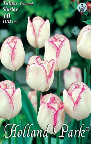 Tulipa Triumph Shirley Triumph tulipán virághagymák Virághagyma körmérete: 10/11 cm Javasolt ültetési ideje: IX. -XII. Virágzás ideje: IV. -V. Javasolt ültetési távolság: kb. : 10 cm Javasolt ültetési mélység kb. : 10 cm Növény várható magassága kb. : 45 cm A Triumph tulipánok 40-50 cm szárhosszúságú, többségében nagy virágú és erõs szárú tulipánok, amelyek k