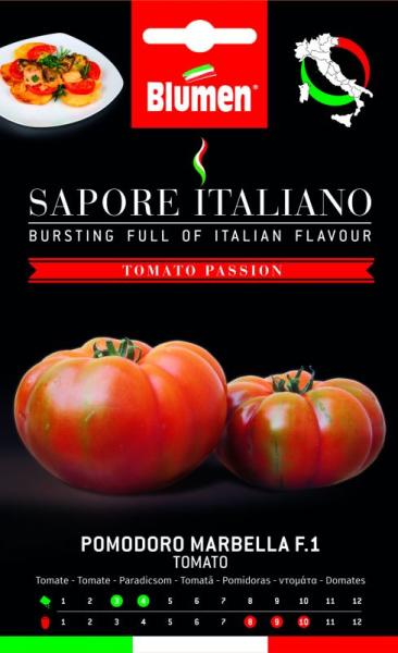 "Marbella" HIBRID (Solanum lycopersicum L. F1) folyton növõ olasz paradicsom Ha Olaszország zöldségeire gondolunk, valószínű a paradicsom jut bárkinek eszébe elsõre. Minden régiónak megvan a kedvenc paradicsoma. A paradicsom a legnépszerűbb zöldség a Földön, és tökéletes tápanyagforrás, egy igazi áldás. Az olasz paradicsom szenvedély sorozat ízeit megismerve beutazhatju