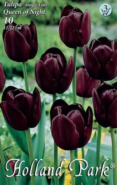 Tulipa Single Late Queen of Night késõi, egyszerű tulipán virághagymák Virághagyma körmérete: 11/12 cm Javasolt ültetési ideje: IX-XII. Virágzás ideje: IV. -V. Javasolt ültetési távolság kb. : 10 cm Javasolt ültetési mélység kb. : 10 cm Növény várható magassága kb. : 55 cm A késõi, egyszerű tulipánok 50-60 cm szárhosszúságú, különösen szép színű tulipánok,