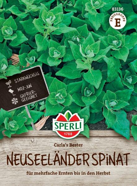 Sperli Carla's Bester új-zélandi spenót vetõmag Nyáron és õsszel szedhetõ spenótszerű különlegesség. A növények bokrosan elágazóak. Többszöri szedés után is sok új hajtás fejlõdik. A száron közepes méretű, húsos levelek fejlõdnek, amelyek a spenóthoz hasonlóan készíthetõk el. Talaja legyen gyommentes, nedves, humuszban és tápanyagban gazdag. A vetõmagok elült