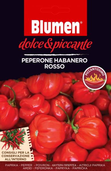 Peperone Habanero Rosso, extrém csípõs piros habanero chili paprika Nagyon ellenálló fajta. Termése 2-8 cm-re nõ meg. Edénybe is vethetõ. Napigényes. Javasolt vetési hõmérséklet: 20/30 °C. Szabadföldbe, és fóliasátorba is vethetõ. 40 cm tõtávolságra, 1 cm mélyen vetendõ. Dupla védõcsomagolásban biztosítjuk a kiváló minõséget, s a garantált kikelést a 3 P. A. C. r