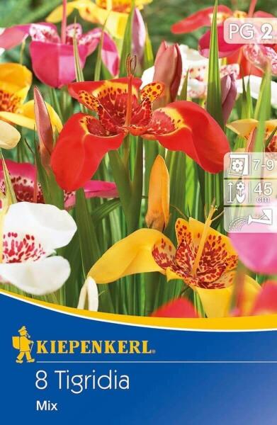 Tigridia Mix vegyes tigrisvirág virághagymák Virághagyma körmérete: 7/9 cm Javasolt ültetési ideje: tavasz Növény várható magassága: 45 cm Virágzás ideje: 7-9 hó
