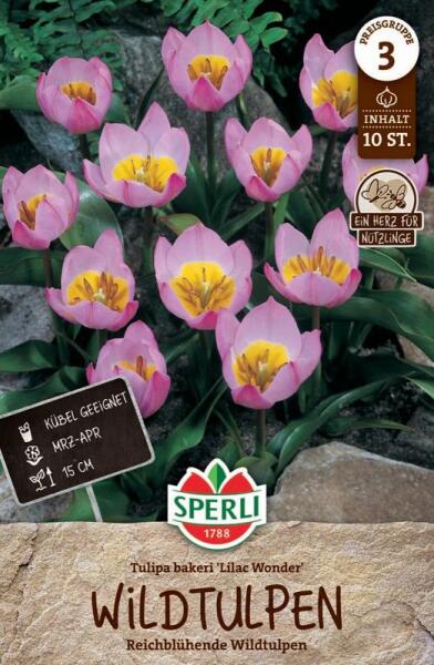 Wildtulpe Lilac Wonder botanikai tulipán virághagyma Virághagyma körmérete: 11/12 cm Növény várható magassága: 30-60 cmJavasolt ültetési ideje: szeptember-decemberVirágzás ideje: március-májusVágott virágnak is alkalmas A botanikai tulipánok kisebb méretűek és természetes formájukban nõnek, közelebb állnak vadon élõ rokonaikhoz. Ezek a tulipánok ideálisak sziklakertb