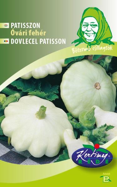 Rédei kertimag Óvári fehér patiszon vetõmag B' NK sor. Indátlan, szabadföldi termesztésre alkalmas fajta. Csillag alakú, vajszínű termése vastag húsú, 1-1,5 kg tömegű. Friss fogyasztásra és savanyításra alkalmas. Napos, szélvédett helyet, tápanyagban gazdag talajt és rendszeres vízellátást igényel. Vetési idõ: május-június Termés vagy virág színe: vajszínű Szed