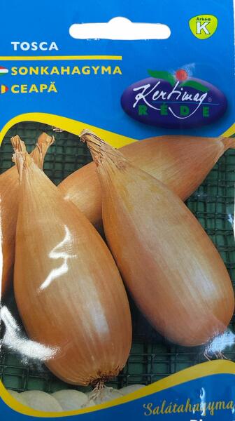 Rédei kertimag Tosca sonkahagyma vetõmag K'Jól szeletelhetõ, kellemes ízű, hosszú, hengeres alakú salátahagyma. Vetési idõ: március Életcikus: , áttelelõ, Termés vagy virág színe: barna Növény magassága: 30 cm Tenyészidõ: középérésű Szedés vagy virágzás ideje: szeptember Sortávolság: 30 cm Tõtávolság: 5 cm Vetésmélység: 1 cm Vetõmagigény: 8 g/10nm 1 g magba