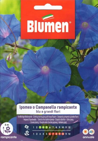 Futó kék hajnalka - nagyvirágú Egynyári növény. Nagyon gyorsan nõ. Jól alkalmazkodik minden körülményhez. Megfelelõ lugas kialakítására, falra vagy pergolára felfuttatni. 0,5 cm mélyen vessük el a magokat. 3 m magasra nõ meg. Ültetés: Márc-Máj. Virágzik: Jún-Okt. Régiónként változhat az ültetési, betakarítási idõszak a jelöltekhez képest. Dupla védõcsomagolá
