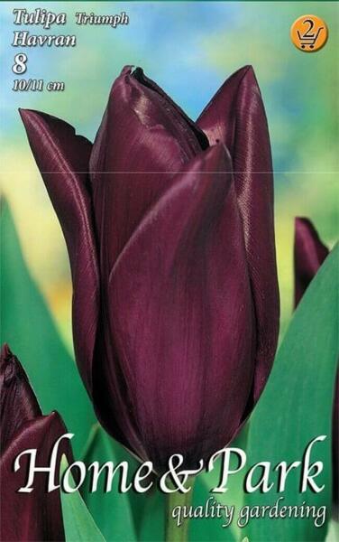 Tulipa Triumph Havran Triumph tulipán virághagymák Virághagyma körmérete: 10/11 cm Javasolt ültetési ideje: Szeptember - December Virágzás ideje: Április - Május Javasolt ültetési távolság kb. : 10 cm Javasolt ültetési mélység kb. : 10 cm Növény várható magassága kb. : 35 cm A Triumph tulipánok 40-50 cm szárhosszúságú, többségében nagy virágú és erõs szárú tu
