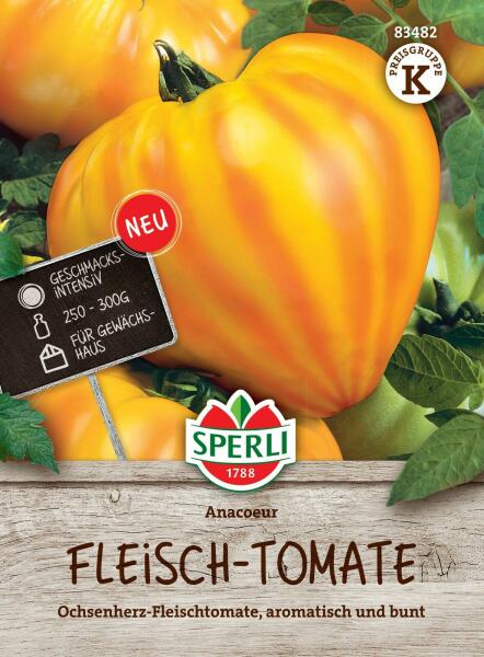 Sperli Anacoeur Húsparadicsom (sárga-narancs csíkos) vetõmag Ez az ökörszív-paradicsom igazi színélmény, kivételes megjelenéssel és ízzel. 250-300 g súlyú, szív alakú, fantasztikus aromájú terméseket hoz. A gyümölcshús szilárd, lédús, illatos, és a sárgától a pirosig terjedõ színátmenettel rendelkezik. Amint a narancssárga/sárga szín intenzívebbé válik, megk
