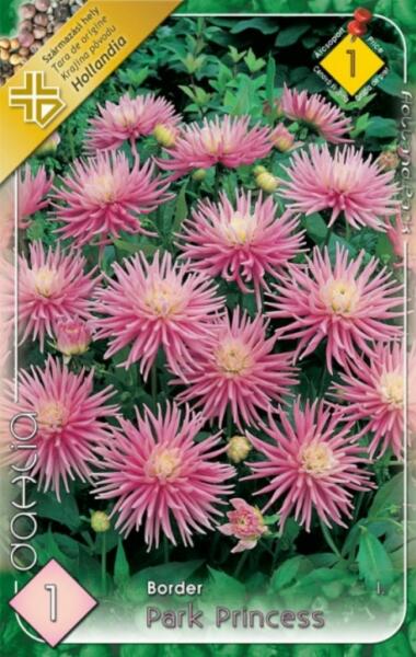 Dahlia Border Park Princess park dália gumó 1' Javasolt ültetési ideje: III. -V. Virágzás ideje: VII. -X. Javasolt ültetési távolság: 50 cm Javasolt ültetési mélység kb. : 8 cm Növény várható magassága kb. : 40 cm Termesztett állományból származó növény. Származási hely: EU Park Dália A jól ismert kaktusz és dekoratív dáliáknál alacsonyabb termetével (kb. 50 cm)