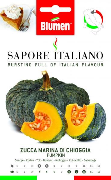 Az olasz konyha egyedülálló a világon. Minden régiónak megvannak a tipikus helyi ízei. A régiókból a leghíresebb, tipikus olasz zöldségvetõmagokat kínáljuk a hobbi kertészeknek, gondosan válogatva és csomagolva. Egy gasztro utazás az olasz konyha régióiban, kóstolja meg! Erõs növény. Közepesen zöld levél. Kerekes összenyomott nagy méretű (5-10 kg) termés. Sötétsz