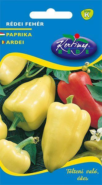 Rédei kertimag Rédei fehér étkezési paprika vetõmag K'Folytonnövõ, hajtatásra alkalmas, édes ízű, hegyes végű, "Cecei" típusú. Vetési idõ: március Palántázás ideje: május Életcikus: egynyári Termés vagy virág színe: sárga Növény magassága: 60 cm Tenyészidõ: korai Szedés vagy virágzás ideje: július, augusztus, szeptember Sortávolság: 60 cm Tõtávolság: 30 c