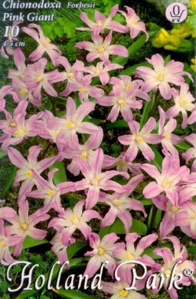 Chionodoxa Forbesii Pink Giant hófény virághagymák Virághagyma körmérete: 4/5 cm Javasolt ültetési ideje: Szeptember - December Virágzás ideje: Március - Április Javasolt ültetési távolság: 8 cm Javasolt ültetési mélység kb. : 8 cm Növény várható magassága kb. : 15 cm A hófény nem kedveli a nyirkos, hideg, kötött talajokat, de ragyogó színével, belülrõl szinte vi